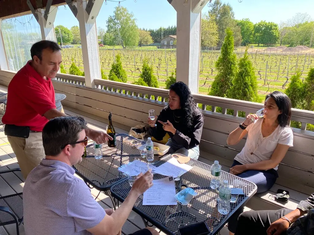 Often referred to as “the hidden treasure of the North Fork,” Pugliese Vineyards is known for its warm, relaxing atmosphere, award-winning wines and a family winemaking legacy that dates back to 1980. The winery boasts a beautiful property with a pond, fountain and spacious outdoor seating areas. Pugliese produces a variety of wines, including Chardonnay, Cabernet Sauvignon, Merlot, Pinot Noir and Riesling, as well as sparkling wines and ports.