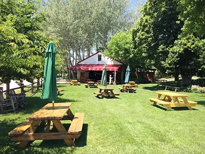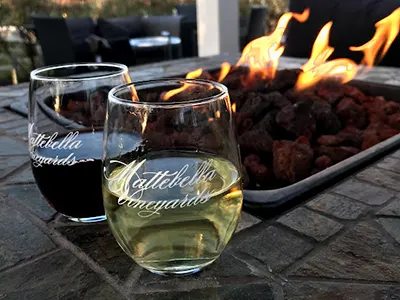 A lovely outdoor patio space is one of the defining features of Mattebella Vineyards, creating the perfect atmosphere for enjoying fine wines and delicious food. Mattebella is an artisanal producer of old-world, Bordeaux-style wines, crafted with sustainable practices and a commitment to environmentally-friendly farming. A rustic indoor tasting cottage, housed inside an early twentieth-century barn, offers additional space for experiencing everything Mattebella has to offer.
